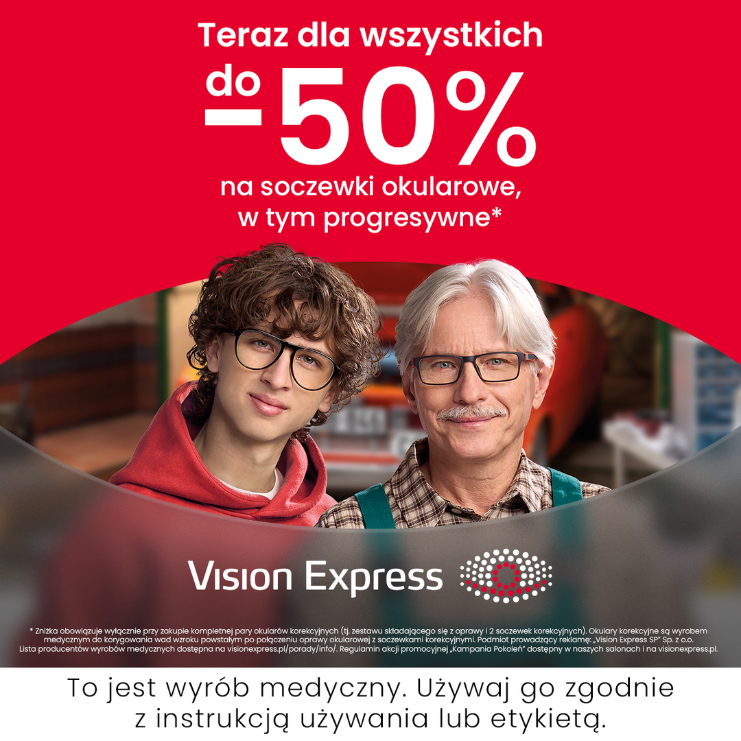 W Vision Express dbamy o wzrok każdego z Was, abyście widzieli to, co naprawdę ważne. Dlatego teraz, dla każdego z Was – niezależnie od wieku – mamy do 50% zniżki na soczewki okularowe, w tym progresywne*.